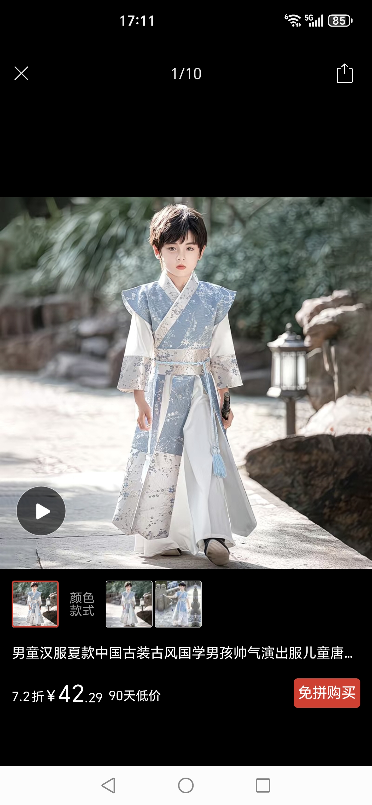 男童古代汉服(全新)