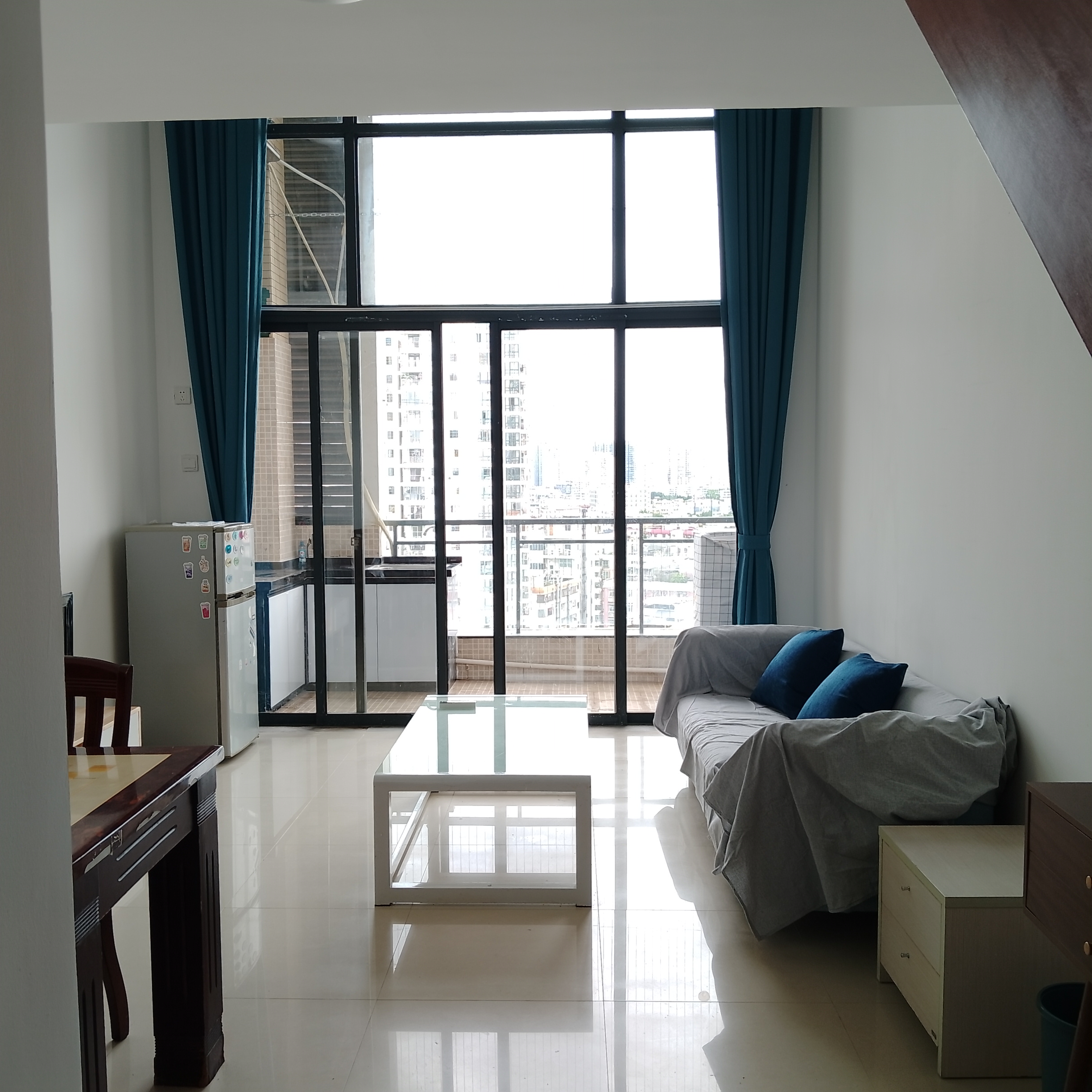 家私:1.8米床、床垫、餐桌餐椅、电视柜、茶几、沙发、二楼衣柜、梳妆台、床头柜等。