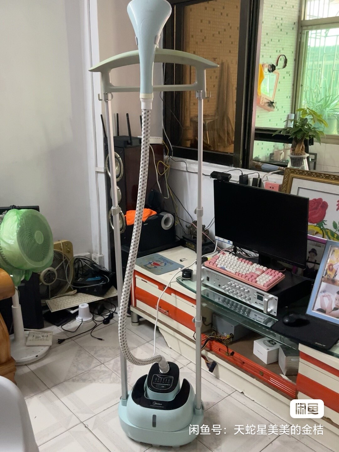 美的挂烫机,型号YGD20D7,立式双杆,蒸汽量大,操作简单,适合棉麻丝绸等各种面料,家用、出租房、宿舍都能用,功能正常,没修过,成色还可以,有点使用痕迹,具体看图。