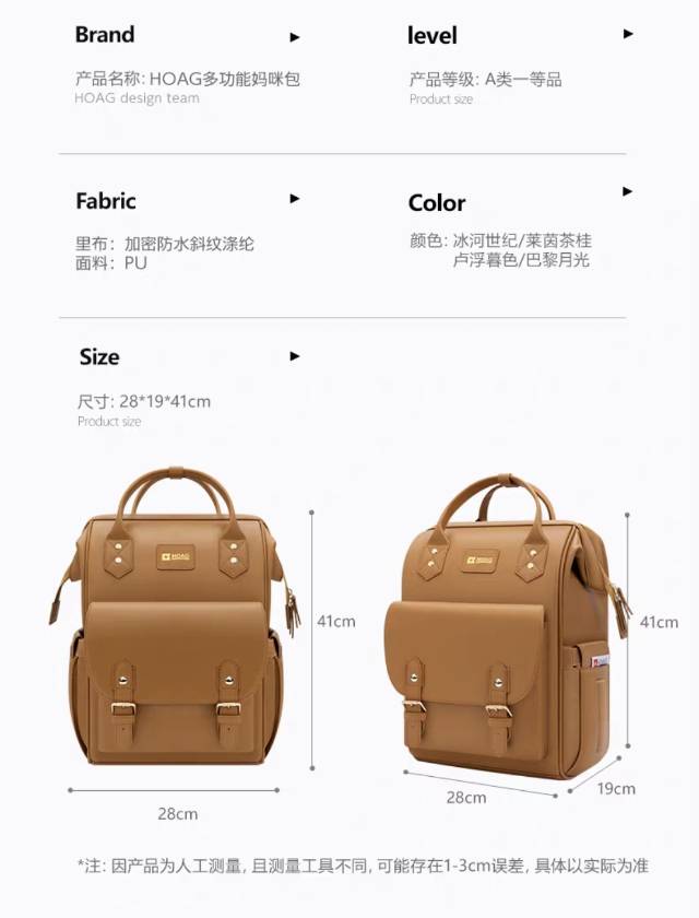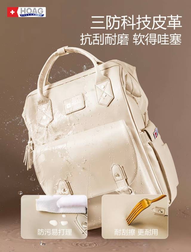 霍格Hoag妈咪包PU皮高颜值大容量双肩包外出轻便母婴包